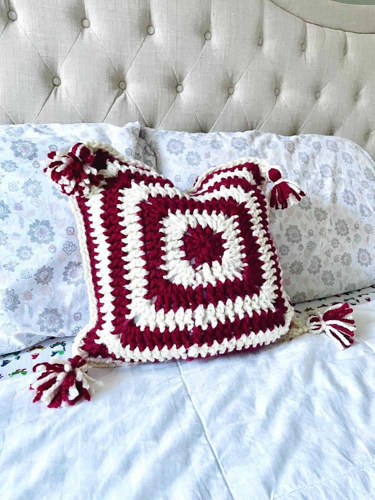 The Peppermint Pillow is a quick and easy project! I made this pillow in just a couple of hours. Crochet Christmas cheer or choose a different color for timeless decor!